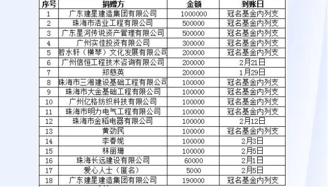 ●抗击肺炎疫情接收捐赠善款明细 ●