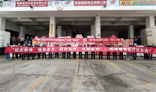 3月2日上午,承载着满满爱心的1784箱海鲜从福州市马尾区发车,为在湖北武汉一线的福建援鄂医疗队带去“生态鱼”“福鱼味”。福建省侨联主席陈式海,副主席翁小杰,省和福州市海洋渔业部门领导,省远洋渔业协会会长陈泽銮等参加出发仪式。