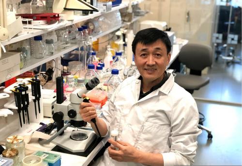 曹义海教授在瑞典卡罗林斯卡医学院实验室工作。(图片来源:中国致公党微信公众号)