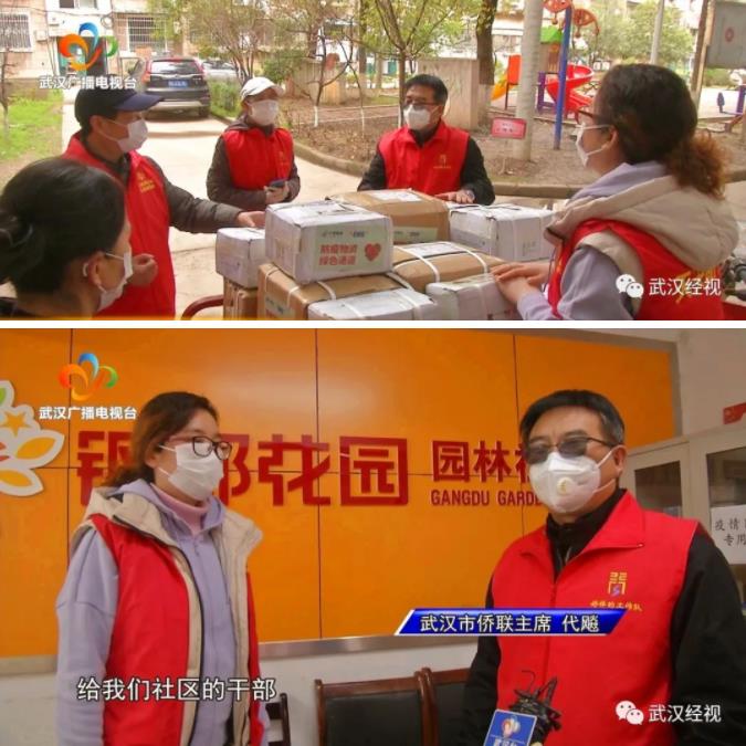 武汉市侨联主席代飚:“疫情发生以来,我们社区的干部非常辛苦。一方面,我们参与干部下基层的防控工作,另一方面,我们也通过各种渠道,给我们社区的干部、社区里面的群众也送上一点防护用品,表达心意!”