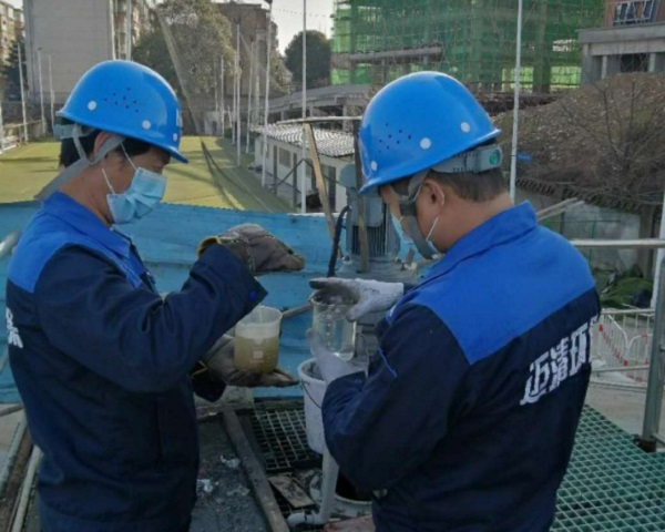 湖南迈清环保科技有限公司工人安装黑臭水污水净化处理设备现场