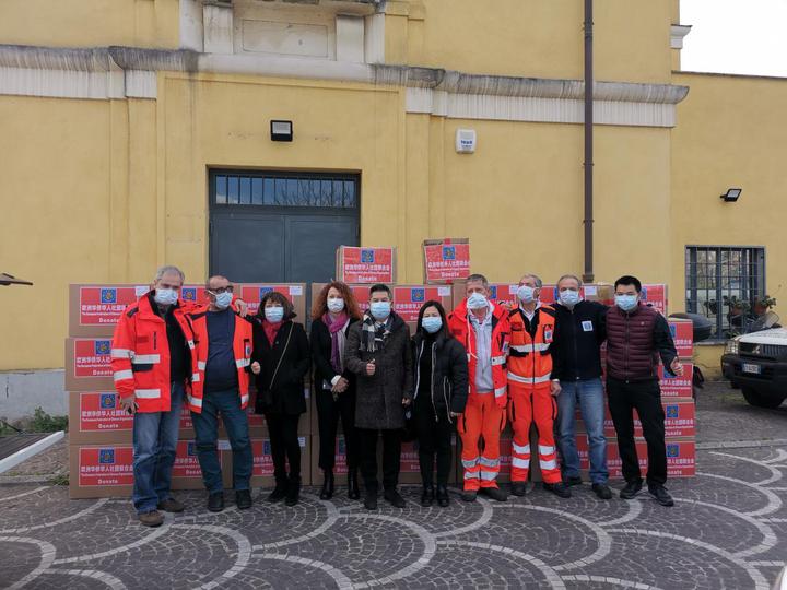 蒋忠南执委受曹燕灵秘书长委托于 3 月 2 日拜访意大利权威感染中心医院 OSPETALE SPALLANZANI ,并与院长Francesco vaia 先生商量捐赠物品和疫情防控工作。3 月 3日与意大利民防部商议捐赠物品和物流运输等事宜。经过意大利民防部的授意,于 3 月 9 日将医疗物资捐赠给 aziendaregionale emergenza sanitaria 拉齐奥大区医疗救援部。