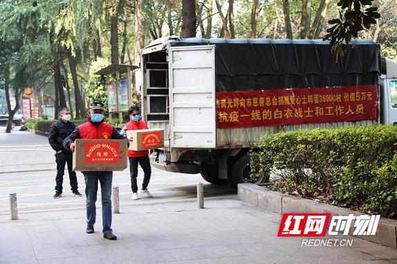 湖南天柱山禽业总经理龚光辉向娄底市慈善总会捐赠3.6万枚爱心土鸡蛋,慰问奋战在一线的医务工作者、公安民警和工作人员。
