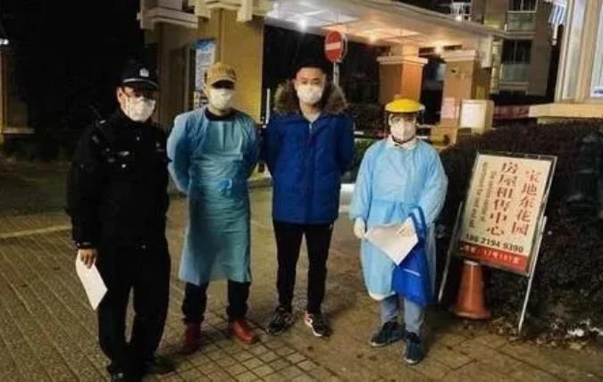 3月13日晚上6点开始,奉贤区贝港三居的志愿者们就一直守候在小区门口。原来,小区里有一位留日学生小范当晚从日本回沪。按照规定,志愿者们要安排他进行居家隔离。