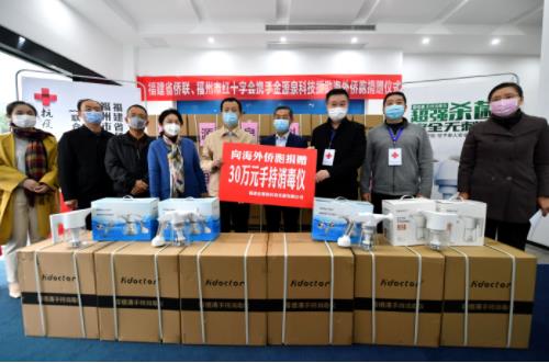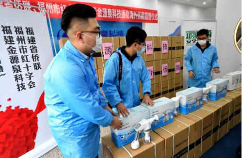 3月18日,福建省侨联携手福建金源泉科技发展有限公司援助海外侨胞捐赠仪式举行,捐赠150台、总价值30万元的雾倍清手持消毒仪,以此支援海外侨团抗击新冠肺炎疫情。
