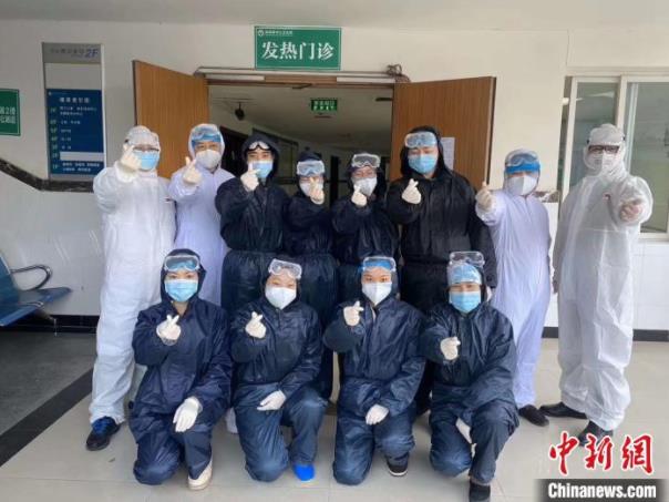 图为王川(后排右一)与发热门诊医护人员合影。重庆市侨联供图