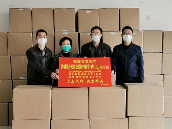 据悉,在得知海外侨胞防疫物资告急后,三明市委市政府紧急调拨10万只口罩,寄往意大利和匈牙利,支持、支援海外侨胞抗击疫情。随后,由三明市海外联谊会和三明市光彩事业促进会各出资10万元购买的防疫物资,以及福建汇天生物药业有限公司捐赠2万只口罩和三明市明卫康医药科技有限公司捐赠3万只口罩,将陆续寄往境外明籍社团发给乡亲。同时,在做好境外疫情输入防控工作中,三明市委统战部组织市海联会、市侨联等涉侨部门采取相应举措,第一时间发送《致广大境外明籍乡亲的一封信》,公布市、县两级侨办、侨联的热线咨询电话,引导海外社团侨领组建抗疫乡亲微信群,及时提供国内疫情防控相关政策、健康医疗咨询等,解答乡亲疑惑,切实做好境外明籍乡亲服务工作。