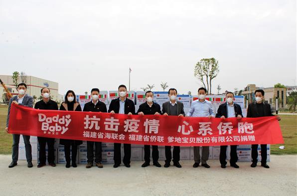 福建省侨联主席陈式海表示,这次福建省海外联谊会和福建省侨联发动向海外捐赠物资,得到爹地宝贝股份有限公司的响应和支持,希望对海外闽籍乡亲有所帮助。也希望更多的企业以及社会各界,关心和帮助闽籍海外侨胞、海外社团,帮助他们渡过难关,守望相助、共克时艰。