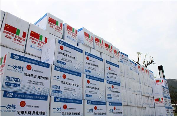 3月20日下午,爹地宝贝股份有限公司援助意大利闽籍侨胞10万只口罩捐赠仪式在福清市举行。福建省侨联主席陈式海、省委统战部一级巡视员郑惠文出席捐赠仪式。