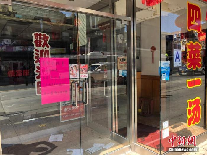 纽约市华人聚居区法拉盛的一家餐厅,受疫情影响停业。