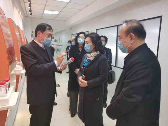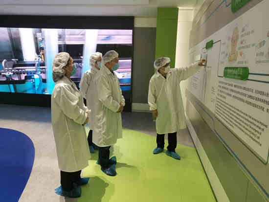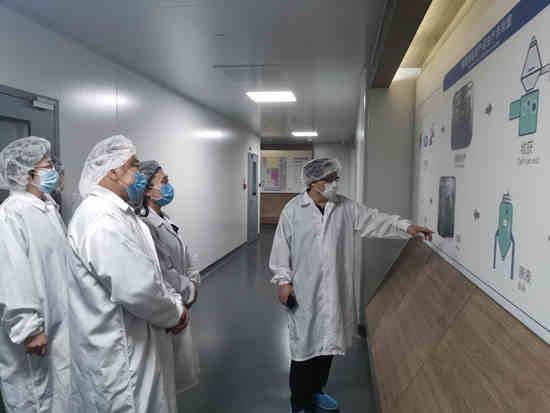 在康希诺生物股份公司,调研组受到了董事长、总裁宇学峰等公司负责人的热烈欢迎,并亲自带领团队向调研组详细介绍了目前企业研发和生产情况,结合公司创业发展和世界生物医药研发进程和现状,着重介绍了康希诺公司创始以来的重要科研成果,特别是成功研发埃博拉疫苗及本次参与新冠肺炎疫苗的研究开发进程。新冠肺炎疫情在春节前突袭而来,康希诺生物股份公司与军事科学院军事医学研究院生物工程研究所联合组成团队,立刻启动研发工作,在春节假期期间快速完成抗原的设计、病毒包装,确定了符合GMP条件下临床试验材料的生产工艺和质量标准。同时平行开展动物实验,完成临床前有效性和初步安全性评价。本项目获得天津市“新型冠状病毒感染应急防治”科技重大专项支持。近日,联合团队合作研发的重组新型冠状病毒疫苗已获批临床,开始在武汉市开展一期试验,成为全国首款进入临床研究阶段的新冠候选疫苗。