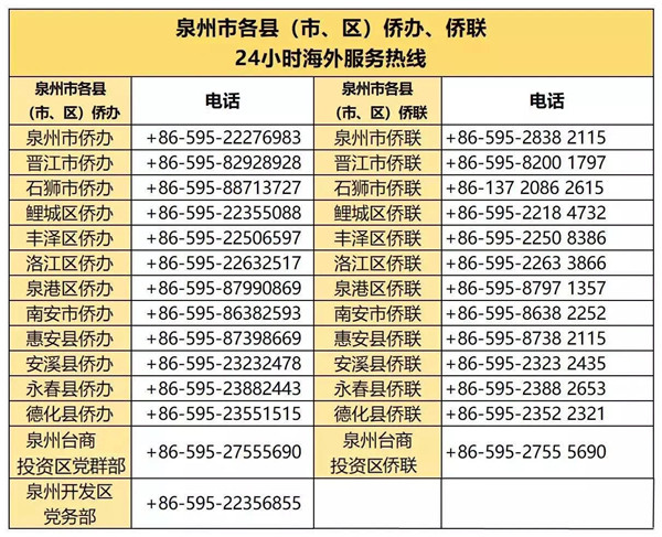 二是成立一个工作专班。市侨联成立海外侨胞和港澳台同胞在泉集中医学观察期间人文关怀工作专班。成立以市侨联主席陈晓玉为组长,副主席王巧丽、钟文玲为副组长的工作专班,统筹协调、具体实施、热心服务集中医学观察的海外侨胞和港澳台同胞。设立24小时热线电话(0595-28382115),专班人员24小时值班,保持与海外侨胞和港澳台同胞及其亲属联系,开展人文关怀,协调解决集中医学观察期间的合理诉求。各县(市、区)成立相应工作专班并提供24小时热线咨询服务,开展海外侨胞和港澳台同胞在泉集中医学观察期间人文关怀工作。