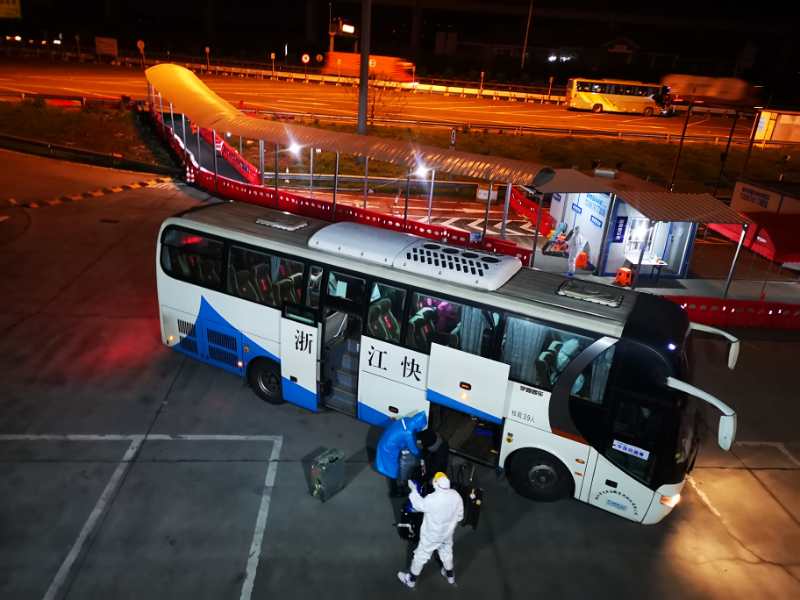 接到上海信息后,丽水工作组立即启动紧急预案:①与上海方保持联系;②向市指挥部通报;③与省指驻大云协调组对接;④指派“共产党员突击队号”大巴车和跟车员穿好防护服在车辆进口待命;⑤专班人员按照分工做好联络对话准备。