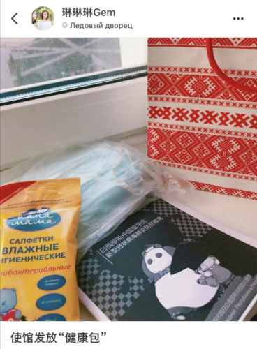 驻白俄罗斯大使馆发放的“健康包”。(白俄罗斯中国留学生社交媒体截图)