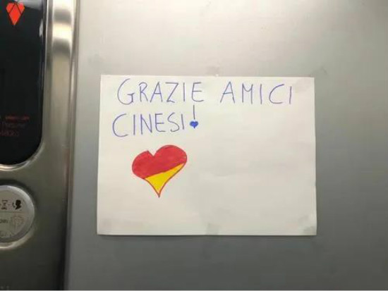 邻居在小区电梯内张贴“感谢信”。(《欧洲时报》意大利版微信公众号“意烩”图)