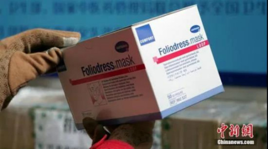 图为匈牙利华侨捐赠的医用口罩。魏建军 摄
