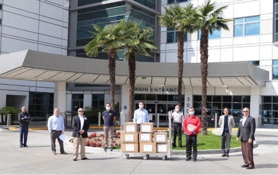 美南华总荣誉主席李社潮、监事长于泽伟、常务副监事长华强也前往UC Irvine Medical Center捐赠了1万个医用口罩和2000副医用手套, 其中4000个口罩是UCI中国留学生何卓宸定向捐赠。UCI医院非常重视,四位主要领导非常感谢美南华总并送上感谢信,表示将把华人社区的善举广为宣传。(双莲集 整理)