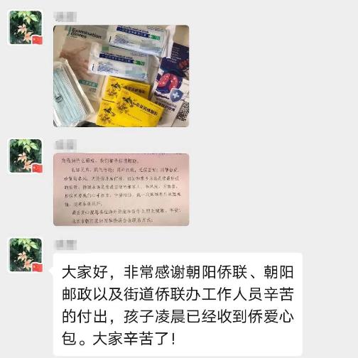 第一个收到了来自朝阳的“侨爱心防疫包”