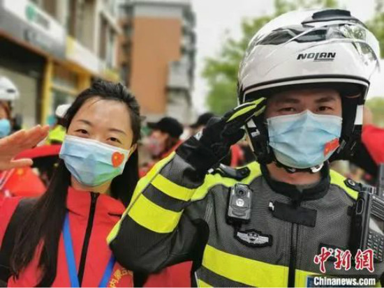 资料图:图为王春燕(左一)与武汉警察合影。王春燕供图
