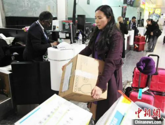 资料图:旅居英国华人护士何彩霞辞去工作岗位,搭乘航班回国,奔赴中国抗击新冠肺炎疫情一线。 张平 摄