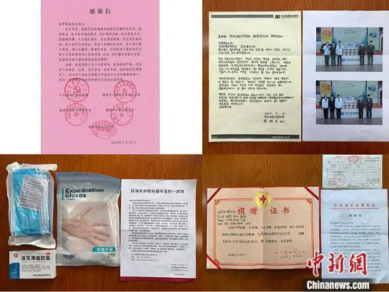 中国华侨历史博物馆收集到的部分捐赠实物资料,左下为朝阳区的“侨爱心防疫包”