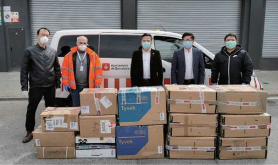 此前,西班牙侨商会代表多次向加泰罗尼亚各地区捐赠了口罩、防护服、护目镜、隔离衣、免洗消毒液、医用手套等防疫物资,帮助联系采购紧缺医用物资货源,引进中国的有效医疗方案。