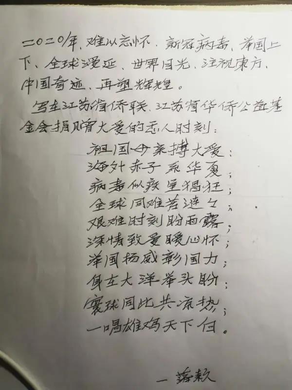 血脉紧相连,手足骨肉亲,身居疫情国,同胞献真心。