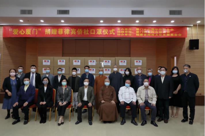 本次“爱心厦门”捐赠菲律宾侨社口罩仪式由福建省闽南文化发展基金会、厦门南普陀寺慈善会和厦门市归国华侨联合会主办。