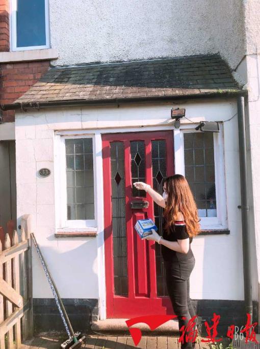 志愿者为旅英闽籍乡亲送口罩等医疗物资。