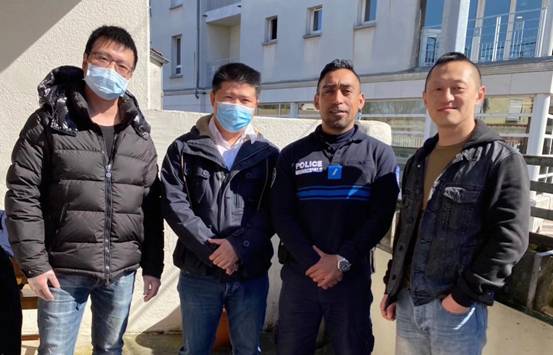 在93省担任警察的老战友杨帆,还有94省Le Kremlin-Bicêtre 市当警察的战友马良表示,看到徐大玉会长和战友们冒着风险、亲自开车前来捐赠防护物资,自己和同事们发自内心的感动和感激, 特别局长也表示自己警局有一位华人同事是非常好的选择。战友送来的防护物资不仅传递了战友情、更是给工作在一线的同事一种信心和鼓励,一种暖心的问候。他坚信,法国定会尽快取得这场战疫的胜利。