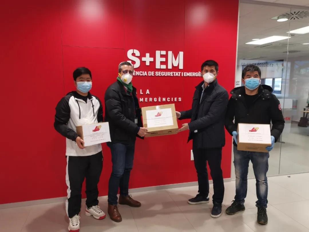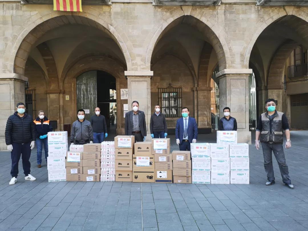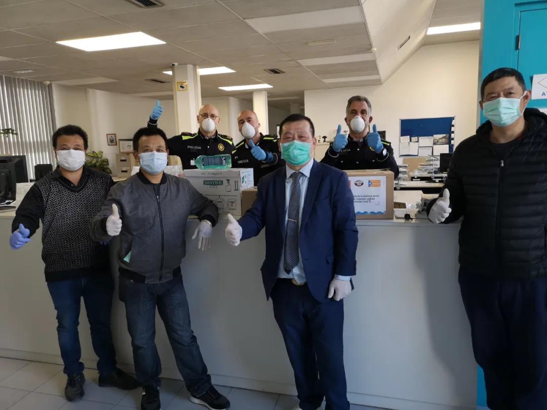 西班牙加泰罗尼亚中部华人华侨协会代表所有居住在manresa市及周边城市的华人华侨们向manresa市政府、mossos警察局、地方警察局、移民局、manresa残疾人协会养老中心捐赠了价值6000欧元的医疗防护物资,包括口罩、酒精、消毒纸巾、消毒喷雾剂、消毒洗手液等,与第二故乡共同抗击疫情。