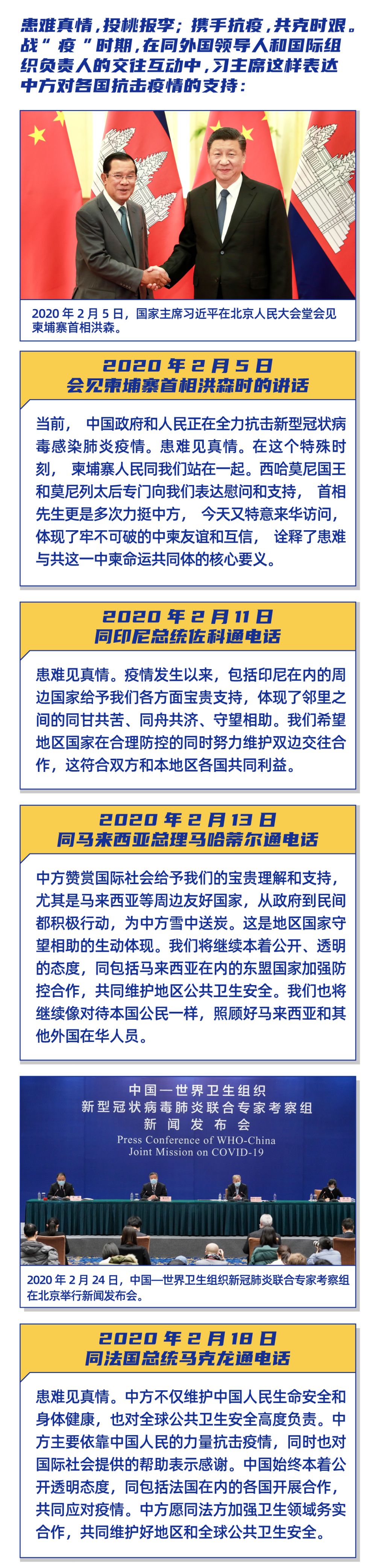 4月16日出版的第8期《求是》杂志发表中共中央总书记、国家主席、中央军委主席习近平的重要文章《团结合作是国际社会战胜疫情最有力武器》。文章第三专题着重强调:患难见真情,中方赞赏国际社会给予我们的宝贵理解和支持,中国人民铭记在心,中华民族是懂得感恩、投桃报李的民族,中方始终在力所能及范围内为国际社会抗击疫情提供支持。
