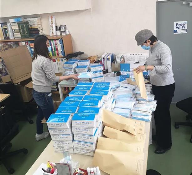 4月14日,在日本东京的日中福清工商会邮寄口罩给旅日侨胞乡亲。此批防护口罩是通过家乡福清黄檗文化促进会筹集并邮寄的,由于航班减少,物流通路不畅,历经一个月余的波折方才抵达日本。为了减少感染风险,一收到口罩,日中福清工商会就通过邮寄方式将口罩发放给旅日侨胞乡亲。