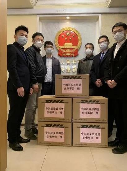 图为中国驻圣彼得堡总领事馆发放的第一批口罩。总领馆供图