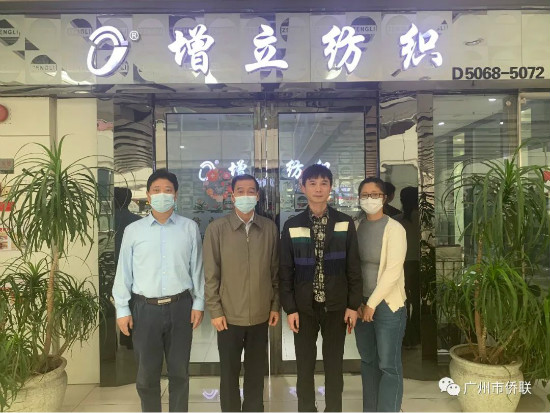 4月14、16日,广州市侨联副主席卢启明带队到海珠区广州增立纺织品有限公司、番禺区广州奥辉电器有限公司开展慰问调研活动,了解疫情期间新侨企业疫情防控、复工复产情况,传达侨联组织对企业慰问和关心,传递温暖。番禺区侨联主席戴锦荣、副主席雷艳霞、广州新侨联谊会执行会长郑小振等参加调研活动。