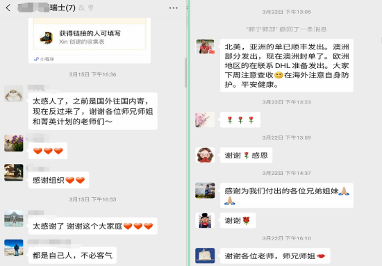 就在广州留服中心的工作人员结束征集购买防疫物资需求并全数将口罩寄出的三周后,有一位沈同学与工作人员取得联系,表示其目前身处美国,疫情日益严重但口罩却所剩无几,急需中心帮助购买200个一次性口罩。由于沈同学的口罩购买量未达到药店批量购买的要求,广州留服中心自发号召同事在广州“穗康”平台预约购买口罩,同时在工作单位、家庭地址片区所在药房进行购买,最终以蚂蚁搬家的方式克服口罩限购的困难将200个口罩成功寄到沈同学手上。沈同学由衷感叹:留服的老师值得信任!