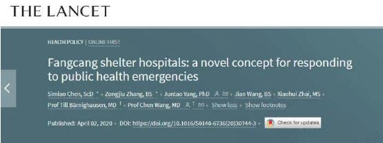 《柳叶刀》发表中国医学科学院王辰院士团队等有关方舱医院的论文,详细阐述了新冠肺炎疫情期间方舱医院的建立和发展,为世界各国方舱医院建立提供了指导和参考作用。