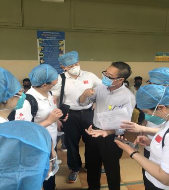 2020年3月24日,在柬埔寨金边,中国援柬抗疫医疗专家组在柬苏友谊医院调研。新华社发 专家组供图