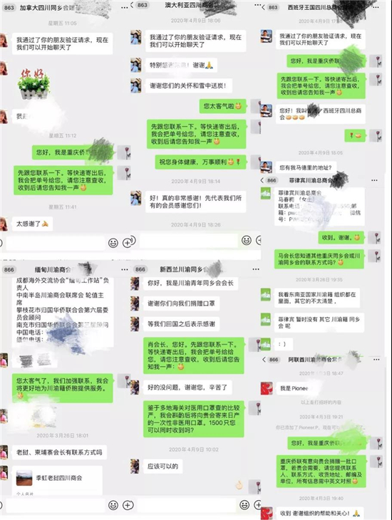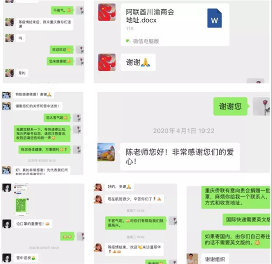 “谢谢你们向我们捐赠口罩,等疫情结束后,我来重庆向你们道谢。”新西兰川渝青年同乡会对重庆各部门表示感谢。