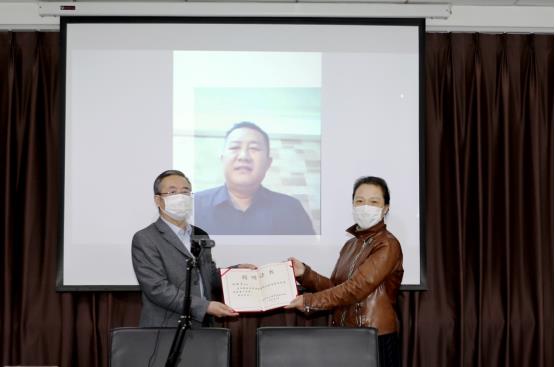 市侨联领导与在坦桑尼亚的冯振宇先生视频联线并颁发捐赠证书