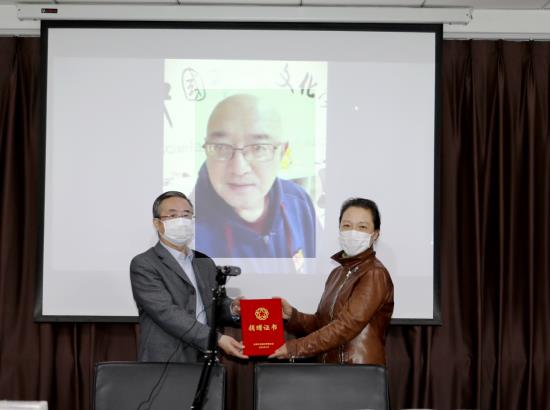 市侨联领导与在西班牙的孟涛先生视频联线并颁发捐赠证书