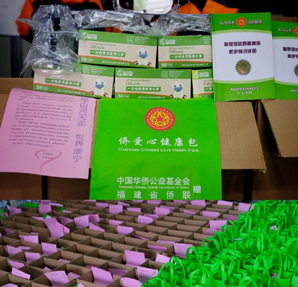 4月24日上午,在中国华侨公益基金会的大力支持下,福建省侨联向60个国家和地区的侨胞捐赠6000个“侨爱心健康包”开始启运。
