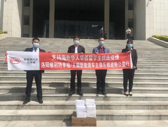 4月23日上午,老城区侨联收到两家企业的爱心捐助,分别是洛阳大北门文化产业园“九号飨”餐厅董志强先生捐助1000元、洛阳比亚迪维利特4S店董事长徐洪勋先生捐助500个“比亚迪”牌防护口罩。以上捐助将用于洛阳市侨联和市留联会支援海外侨胞、留学生抗击疫情。