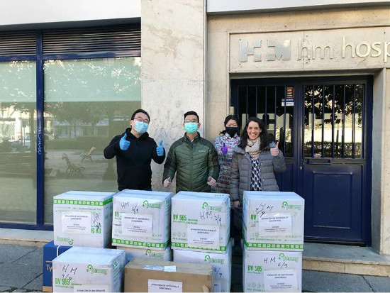 来势汹汹的疫情,让西班牙当地的很多医院和公共服务机构面临着医疗物资紧缺的困境。“这里一线医护人员的防护物资当时是极度匮乏的,许多侨胞是看见当地医护人员在自己社交平台上发出求助,所以在第一时间自主发起了捐赠活动。”短短一周时间,西班牙华侨华人协会和侨界联盟名义共计向西班牙医院捐赠6500件防护服、1300个护目镜、10000个N95口罩、10000瓶洗手液,以及大量的医用手套与雨衣。让陈建新记忆犹新的是,3月13日和16日那两天,他和志愿者杨凯、刘润菡,还有其他侨团叶国平、李欣瑜、杜林飞、黄胜华、徐振海、倪佩剑、陈伟玲等一起,总共跑了西班牙的9家医院。“当时只是戴了普通口罩和手套,心里根本没感觉害怕,只是想把物资尽快送到。”忙完了之后,陈建新才觉得有点担忧,他把这比喻成上战场,“我们好比部队的后勤兵把‘炮弹’、物资送往抗疫前线,这是每位战士义不容辞的责任。”