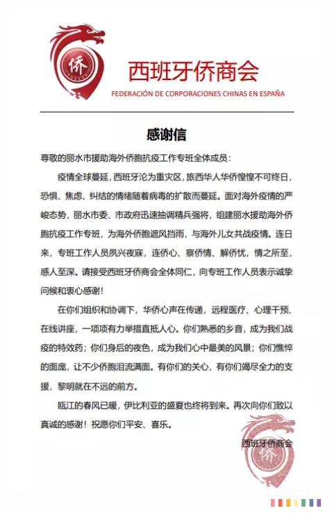 一位38岁的西班牙侨胞感染新冠肺炎并出现休克症状,西班牙华侨华人社团联谊总会与青田县中医院通过千百结对群内外联动,及时挽回了年轻的生命。此类事迹举不胜举。