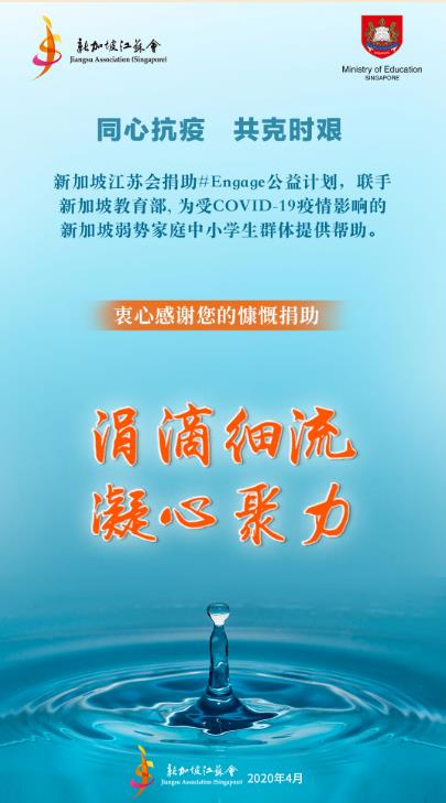 随着COVID-19冠状病毒疫情的形势越来越严峻,新加坡目前正处在最艰难的时刻。作为社会成员,新加坡江苏会的理事和会员们同样深受影响,遇到一些困难。与此同时,作为新移民社团,新加坡江苏会积极承担社会责任,响应新加坡教育部号召,共筹集$58,050新元,参与#Engage公益计划,支持社会公益机构The Rice Company , 为受疫情影响的新加坡弱势家庭中小学生群体提供帮助,解决疫情期间10多所学校学生们的餐食、学习用品等问题。