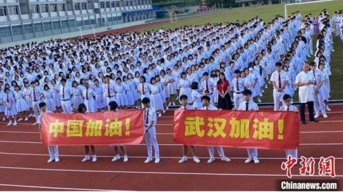 资料图:马来西亚居銮中华中学师生声援中国抗击疫情。惠阳区侨联供图