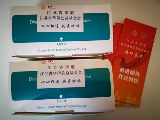在获悉当地留学生急需口罩的信息后,江苏省侨联迅速协调,给在英留学生捐赠4000枚医用口罩。江苏侨联捐赠的口罩已分别于4月6日和4月8日抵达英国爱丁堡,并由博士联盟在4月12号之前完成发放和邮递。