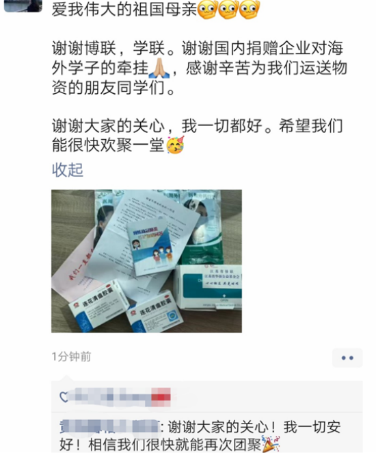 一方有难,八方支援。心心相连,共克时艰。博士联盟代表广大留学生团体对江苏侨联密切关注和支持海外留学生防疫工作,牵挂和关怀英国华人华侨的健康安全表示衷心的感谢。作为本批抗疫物资的对接方,博士联盟已通过微信、网站等社交平台迅速发布物资讯息、建防疫微信群,逐步开展物资发放活动。