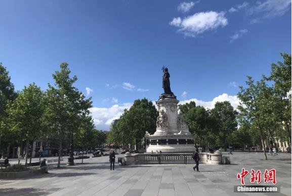 当地时间5月1日,法国继续处于“封城”状态。在巴黎的共和广场,行人极为稀少。(中新社记者 李洋 摄)